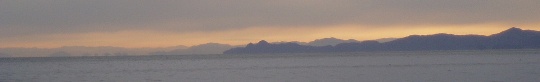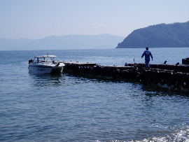 | 1月10日、AM9:00 成生岬の奥に敦賀半島や越前岬へ続く海岸線が見えました。 この現象は主に冬の時期、空気の澄んだ日に見られます。 波も治まり出航可です。今日の夕方までは持ちそうですが、予報では南西後北西 の風で波は1m。今晩3mまで波が上がり、明日は沖には出れそうもありません。 |