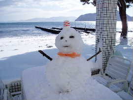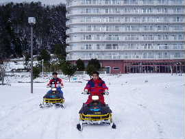 | 1月23日、今年一番の寒波ですっかり 雪化粧。27日の火曜日頃まで冬型が 続きそうです。マリーナは開店休業で 冬眠状態です。 6号館の広場でスノーモビル遊びが出 来ます。遊びに来てください。 |
