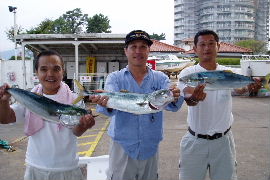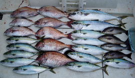 2日は冠に行かれた方もおられました が、波が高く釣りにならなかったようで す。3日は養老沖まで波もほとんど無 かったようです。水温はまだ高いですが 魚の喰いは悪いようです。 |