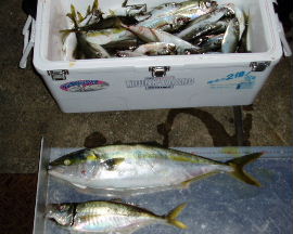 | 養老沖の漁礁でまた青物(ハマチ57cm) が釣れました。数は少ないですが、これ だけ立て続けに釣れるということは、また ブリの可能性もあり、今後楽しみです。 今日29日(日)は台風16号の影響は ほとんどありませんでしたが、明日の夜 直撃しそうです。心配ですね。 |