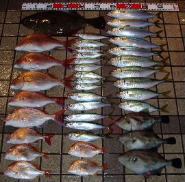 | ← 10月30日、山崎様・高木様の釣果 久しぶりの釣果情報です。 ヒラメ50cm、アジは大型の真アジが多く 一番大きなものは41cmありました。 |