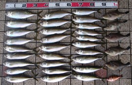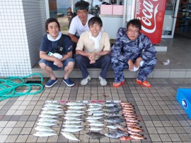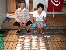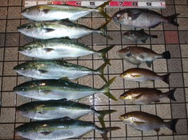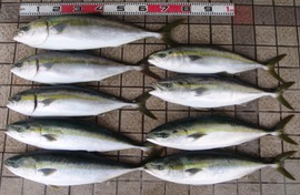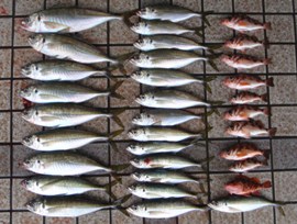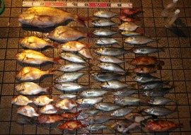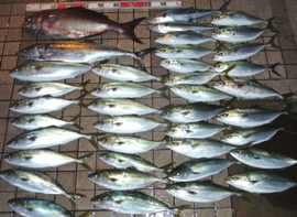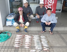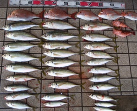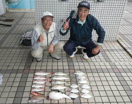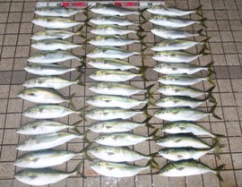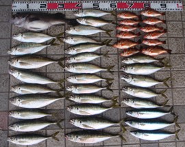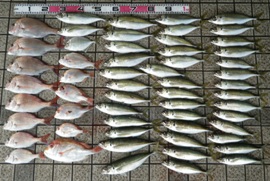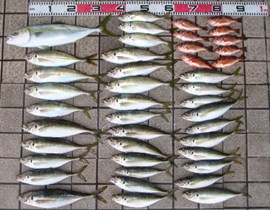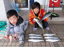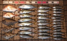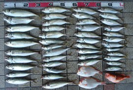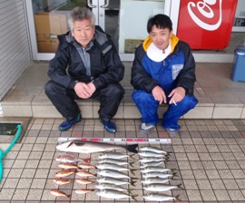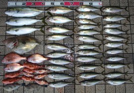 3月6日、真アジ45㎝、吉山様 菅様の記録43㎝を更新しました。 |