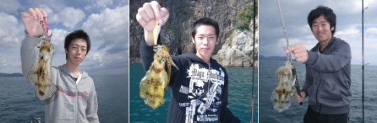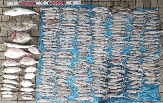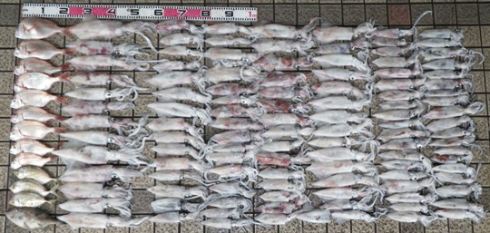 1月8日、白イカ胴長29cm、矢野様 丸本様の記録22㎝を更新しました |
