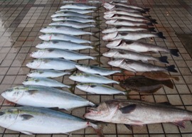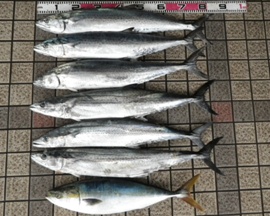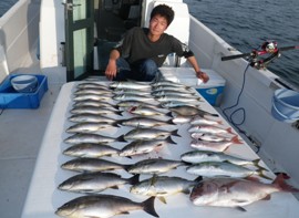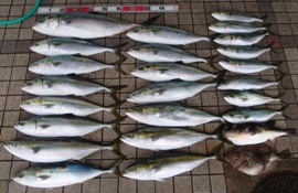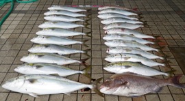 約2週間ぶりの出船です。 今年初の釣果は、出ました! サワラの新記録です!! 中川様の記録82cmを更新しました。 |
