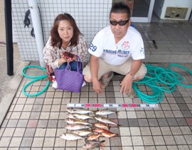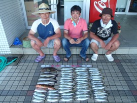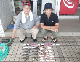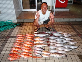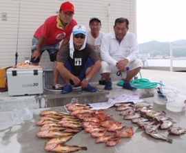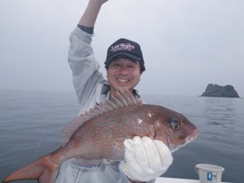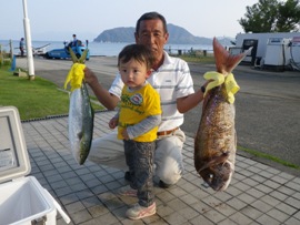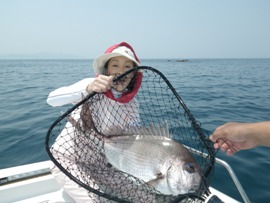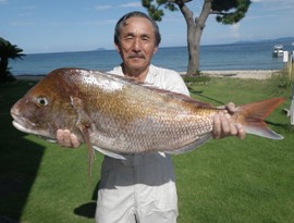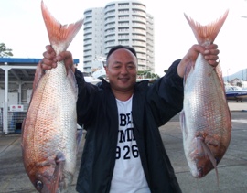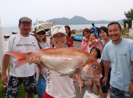10月8日、真鯛1位83㎝、松村様↑→ 上田様の記録82㎝を更新しました!! |