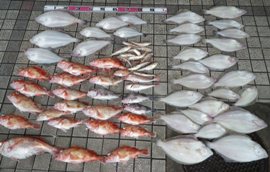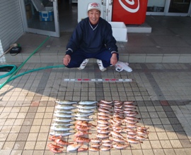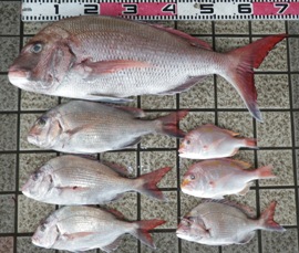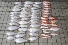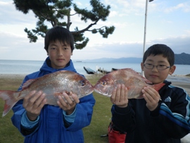 2月3日、アマダイ47㎝、高田様 来田様の記録44㎝を更新しました。 |