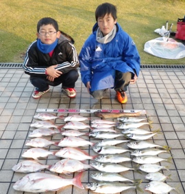 12月31日、マトウダイ45㎝、波多野様 山木様の記録37㎝を更新しました。 |
