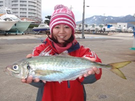 1月8日、スズキ80cm、北井様 今年度最長記録です |