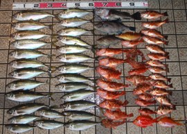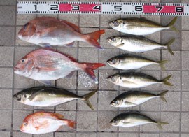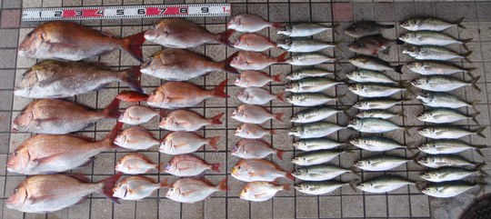 4月6日、小島様、養老沖漁礁で アジが釣れるようになりました。 |
