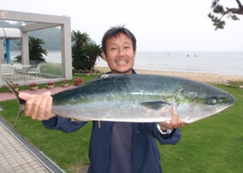 4月9日、ブリ95cm、9.3kg ↑→ 牟田様 |