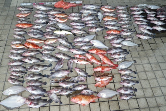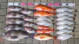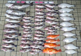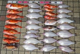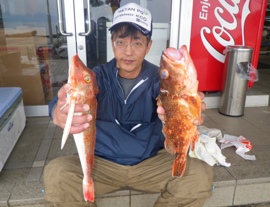 4月29日、イズカサゴ45cm、樋口様 矢野様の記録42㎝を更新しました |