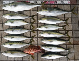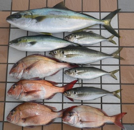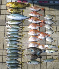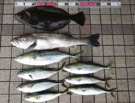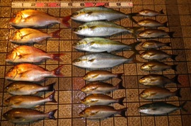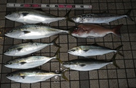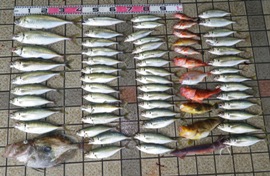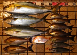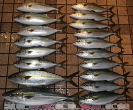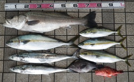 11月24日、サワラ80㎝、マアジ39㎝、梶原様 今年度最長記録です |