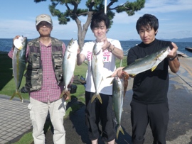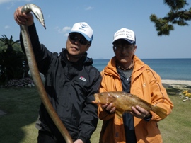 4月14日、スズキ88cm、大谷様 森木様の記録78㎝を更新しました |