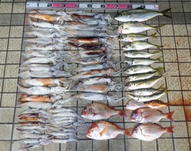 ←↑10月19日、アオリイカ胴長32㎝、土井様 中澤様の記録28㎝を更新しました |