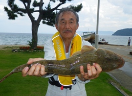 4月27日、ハモ185㎝、キジハタ43㎝ 丸本様、今年度最長記録です |