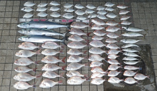 4月20日、マアジ40cm、塚本様 西畑様の記録36㎝を更新しました |