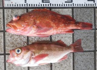 2月13日、ウッカリカサゴ38cm、オキメバル34cm