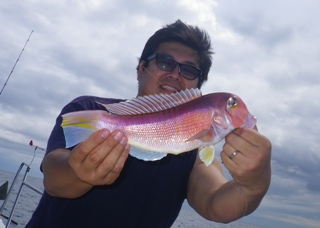 船釣り始めての初心者さん、他の人がアコウやガシラを釣り上げるのを横目に、底取りも分からず苦戦。