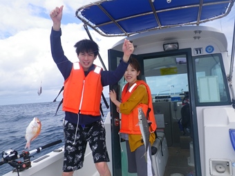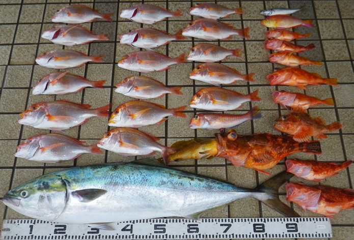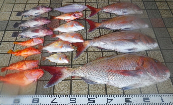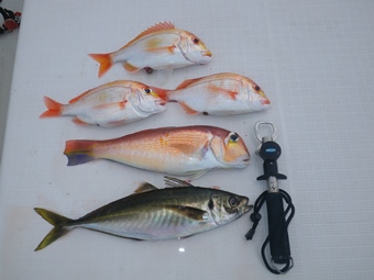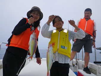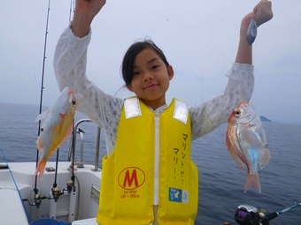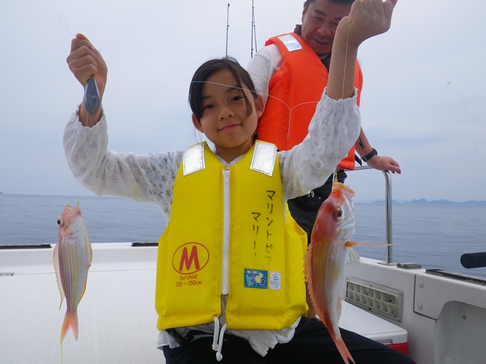 甘鯛レンコのダブル!入れ食いでしたが彼女が船酔いのため帰港する事に。 |