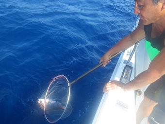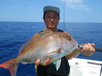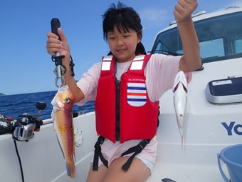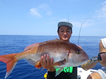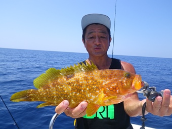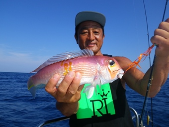 ところが先輩を上回るサイズの甘鯛を後輩船長がジグで釣り上げました。 |