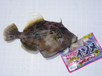 ナイスサイズのカワハギも追加! ワームでカワハギも釣れるんだ! |