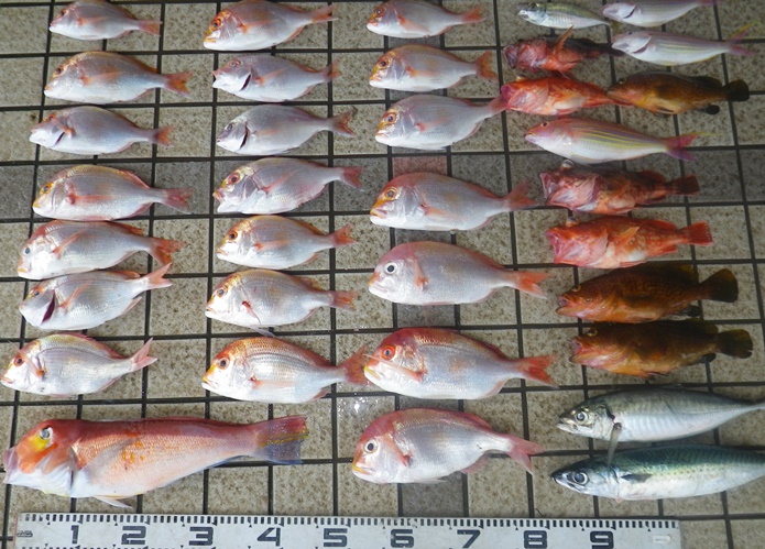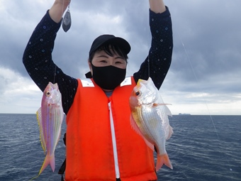 開始早々から40cmオーバーのマアジが3連で揚がってきました。(^^)/ |
