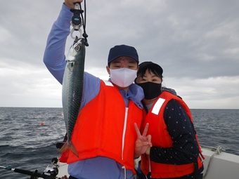 小さな鳥山を発見!急行すると中層に大型魚の反応が。 見事メジロゲット! しかし、その後再び沈黙の海に・・・ |