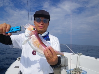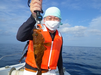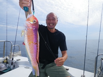 中島船長も小さいのをゲット! 流石に先輩を立てるマナーを心得ています。 |