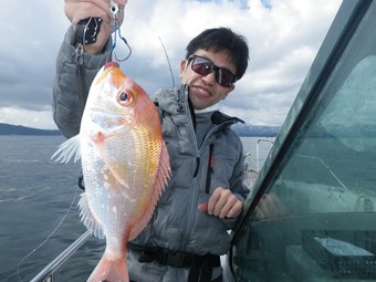 タイラバで辛抱強く粘れば、こんな所でも真鯛が釣れます。 |