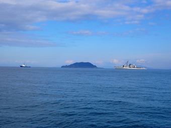 タグボートに曳かれて古い護衛艦が何処へ? それ、その辺りに沈めて貰えませんか。 いい漁礁になりそうです。 |