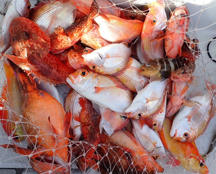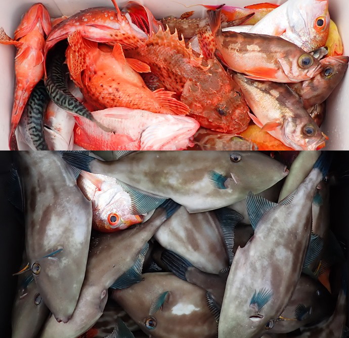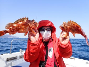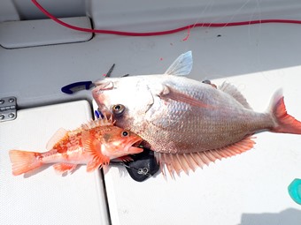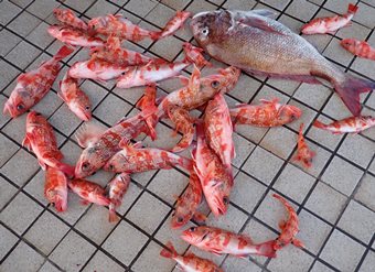 終了間際、ブリ、タイの邪魔が無くなると、本命のユメカサゴが連発しだし、何とか数を釣ることが出来ました。 |