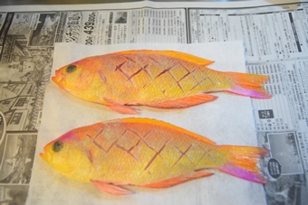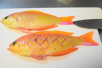 ウマヅラ・ガシラは刺身以外の調理では身が新鮮過ぎてはじるので2~3日寝かした方が良いです。今日はシキシマハナダイを食べます。 |