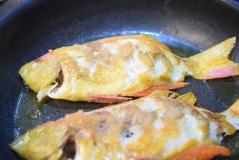 ニンニクを取り出し、魚を入れます。 |