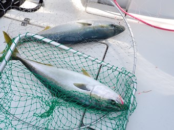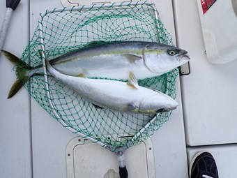 オーナーもブリとメジロのダブルです。 こちらも仕掛けがズタズタ(-_-;) オキメバル用の胴突き仕掛けですから、ブリには対応できません。 |