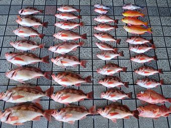 36cmのナイスサイズなオキメバル釣れましたが、喰い渋く、単発ばかりで数が上がりませんでした。(>_<) |