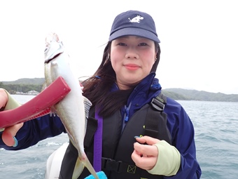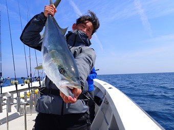 マリントピアの高瀬船長はやはりこれです。 ジギング命なので、これを釣らないと一日が始まりません。 |