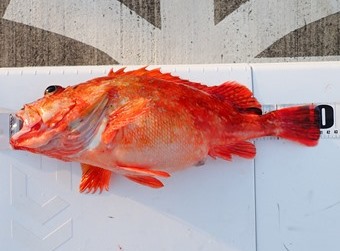 オキメバルもタイラバで釣れる奴は大きいです。36cmです。 |