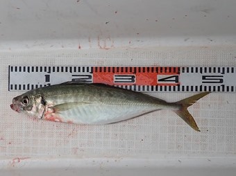 一見さんのオニアジです。 今日は鯖や鯵よくヒットしました。 |