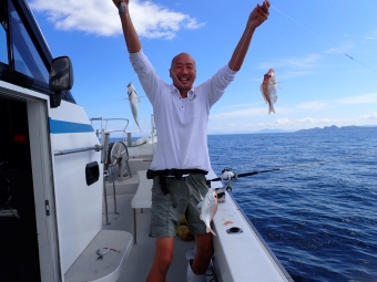 橋本船長3連で大喜び いつからファミリーフィッシングにハマったんや(-_-;) |
