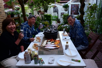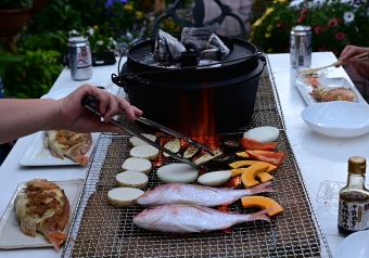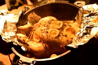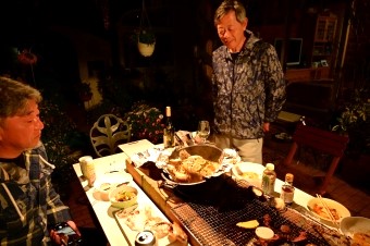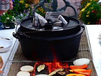 ![]() オーナーが自慢料理を披露です 下と上からの炭火で焼くダッチオーブン |