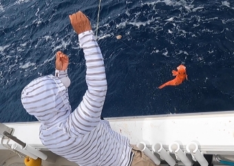 ![]() 何度か強い引きでハリス切れも かじられたのもあり、サメの仕業かも知れません |