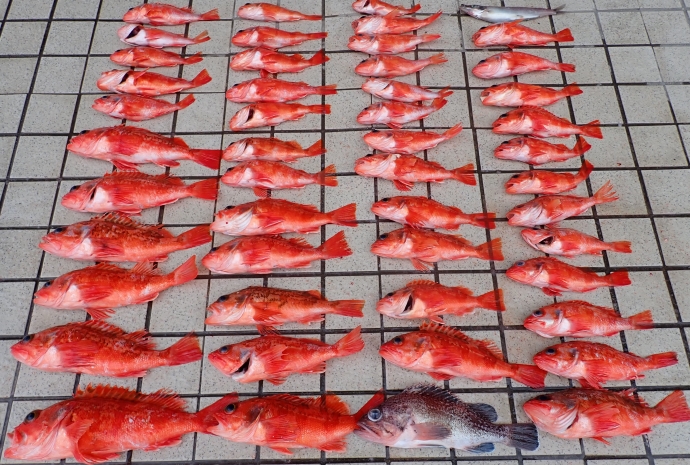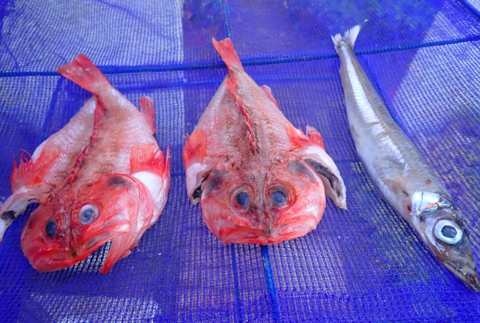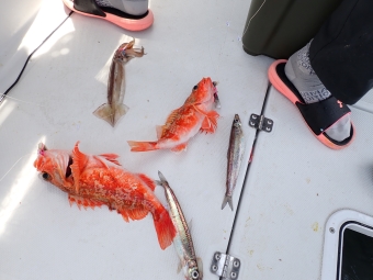 ![]() 沖ギス釣れました 底引きで大量に捕れる魚で釣りでは珍しいです 丸干しが美味しいので持ち帰ります |