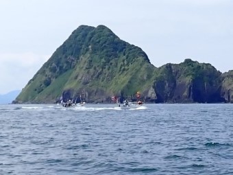 ほぼマリーナを同時刻に出た船はもう釣りをしていました。 船外機艇は早い(@_@) |