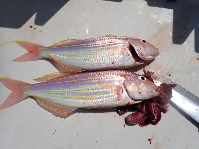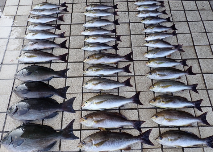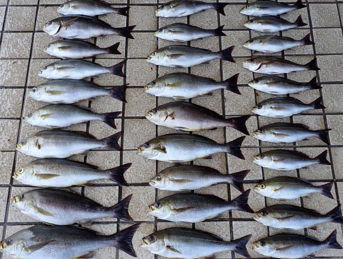 イサキはよく釣れましたが、ウリ坊サイズが多く、リリースが多かったです。 |