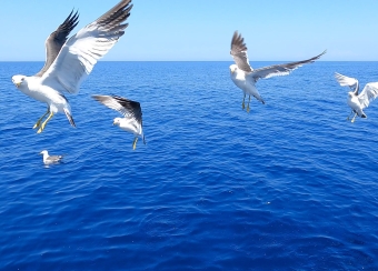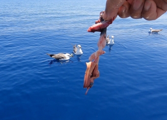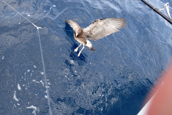 前回はオオミズナギドリでしたが、今回はウミネコ幼鳥に邪魔されっぱなしでした |