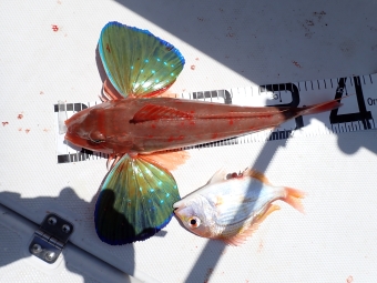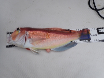 ようやく大きなユメカサゴが来たので計ってみましたが、それでも40cmは届きませんでした (>_<) |