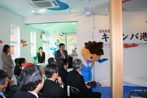 天橋立キャラクターの「かさぼう」もオープニングセレモニーでご挨拶