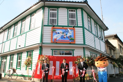 この建物は、大正時代の建築で、歴史ある宮津の観光拠点を目指し、建築当初のかたちに復元されました。建物内にはこれまでの「丹海バス宮津案内所」に加え、新たに「京都丹後米製造所団子工場」ができ、宮津の新たな名産になることを目指して製造販売されます。ここで作られる団子は、「丹後でダンゴ」のネーミングで、3年間連続特Aを誇る地元・丹後産コシヒカリを使用していますので、最高の安心素材で美味しい団子を食べることが出来ます。