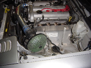 ガスレンジの遮熱板を使ったので安物臭かったのですが、機能的にはエキゾーストの熱気を遮り、フレッシュエアーだけを吸い込むことでパワーアップを目的としたもので、十分役目は果たしていました。 |