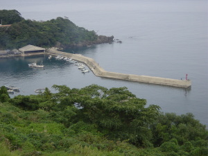 磯へ向かってエギをキャスティング |